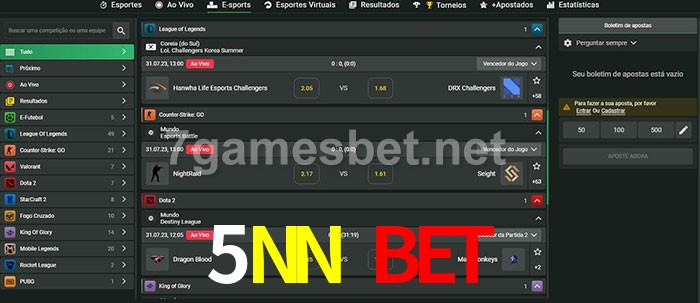 O 5NN Bet oferece uma grande seleção de opções de apostas em e-sports com probabilidades competitivas